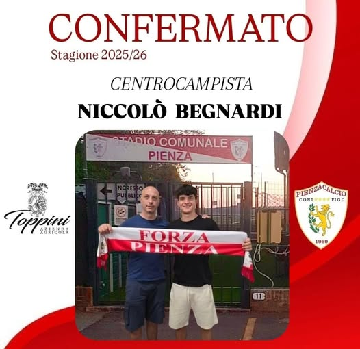 Il Pienza comunica la conferma di Niccolò Begnardi per la stagione 2025/26, dopo una stagione esaltante in cui ha dimostrato il suo grande valore in diversi ruoli.